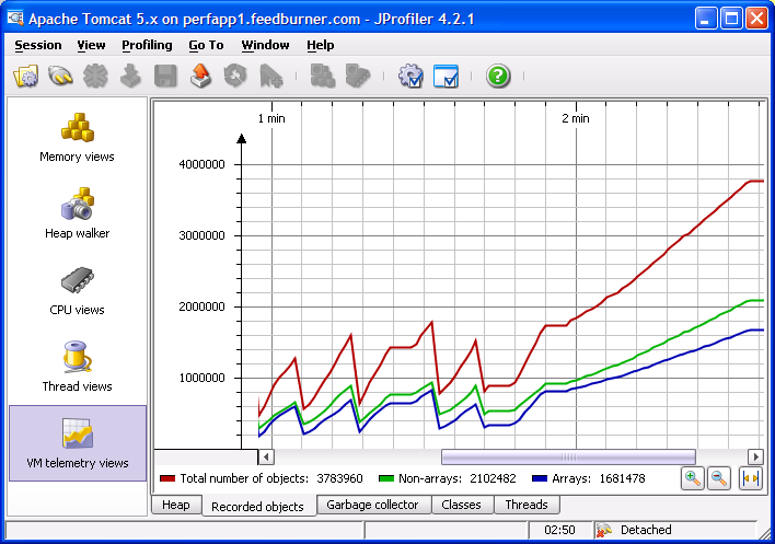 At FeedBurner, the scalability and efficiency of our core app is obviously very important and has a direct bearing on our equipment purchasing plans. But, to be honest, we haven't been terribly formal about things. Sure, we run our code through a profiler on occasion, and we'll tweak our jvm settings here and there, but for better or for worse, most of our performance tuning has been reactive, usually driven by frequent db query measurement and analysis.