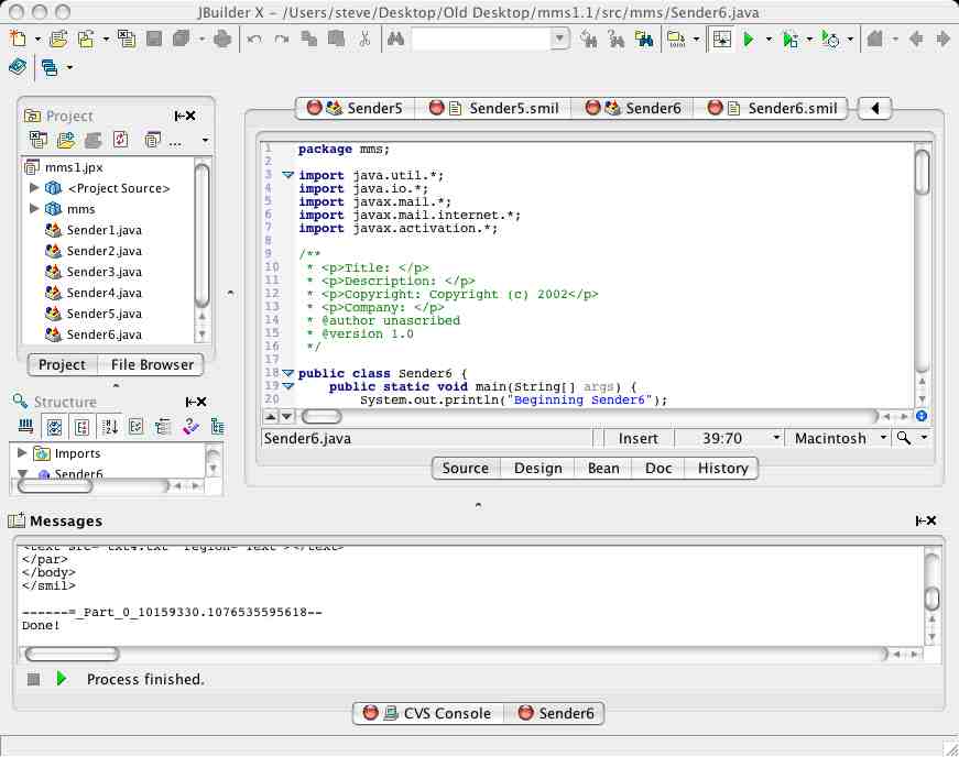 actually, i have mixed feelings about this, but last week, while i was sleeping, my powerbook downloaded a new version of java which upgraded from 1.4.1 to 1.4.2. in installed it blindly, having known in the past, this seemed to cause many problems with various Java based apps, particulary JBuilder. Borland gave up supporting JBuilder with version 7, and they are now on 10 (X). I had managed to cobble together some scripts to run the linux version of JBuilder 9, and had a feeling upgrading might cause problems, and indeed it did. after the install, i read the release notes at