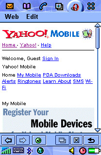 As a mobile browser, the default client is acceptable, but a much better replacement can be found in the free Opera download SE makes available directly from their P800 site. The 320x208 display area is of course too narrow to handle most desktop-oriented website content without excessive scrolling, but Opera's ability to compose a usable page is commendable -- even with framesets. Opera is able to browse either HTML or WML "wireless web" sites. One very useful Opera feature is called "Fit to page." It forces any site to scroll only vertically by compressing images and realigning all content within a single, display-width column. This feature can create an incredibly 'tall page, however, and it requires extra rendering time (over a minute to load CNN.com in this mode vs. about 50 seconds in the standard view). It would be nice if Opera could rotate the browser display 90° and display pages in a landscape layout; this way the P800's 308 pixel-wide aspect could be put to more effective use.